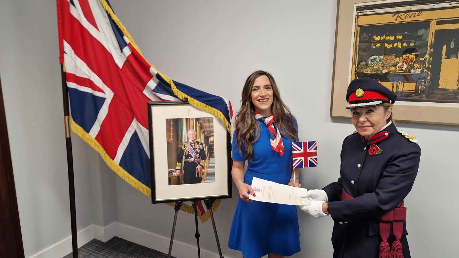 A presentation was made by the Representative Deputy Lieutenant for Camden, Ms Roxane Zand, to Afra Sarrafi at a ceremony on Friday 8th August (see below)